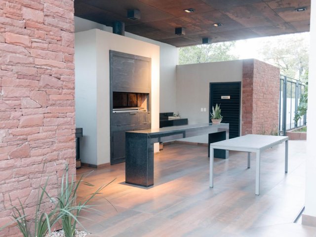 Balcón con parrilla.